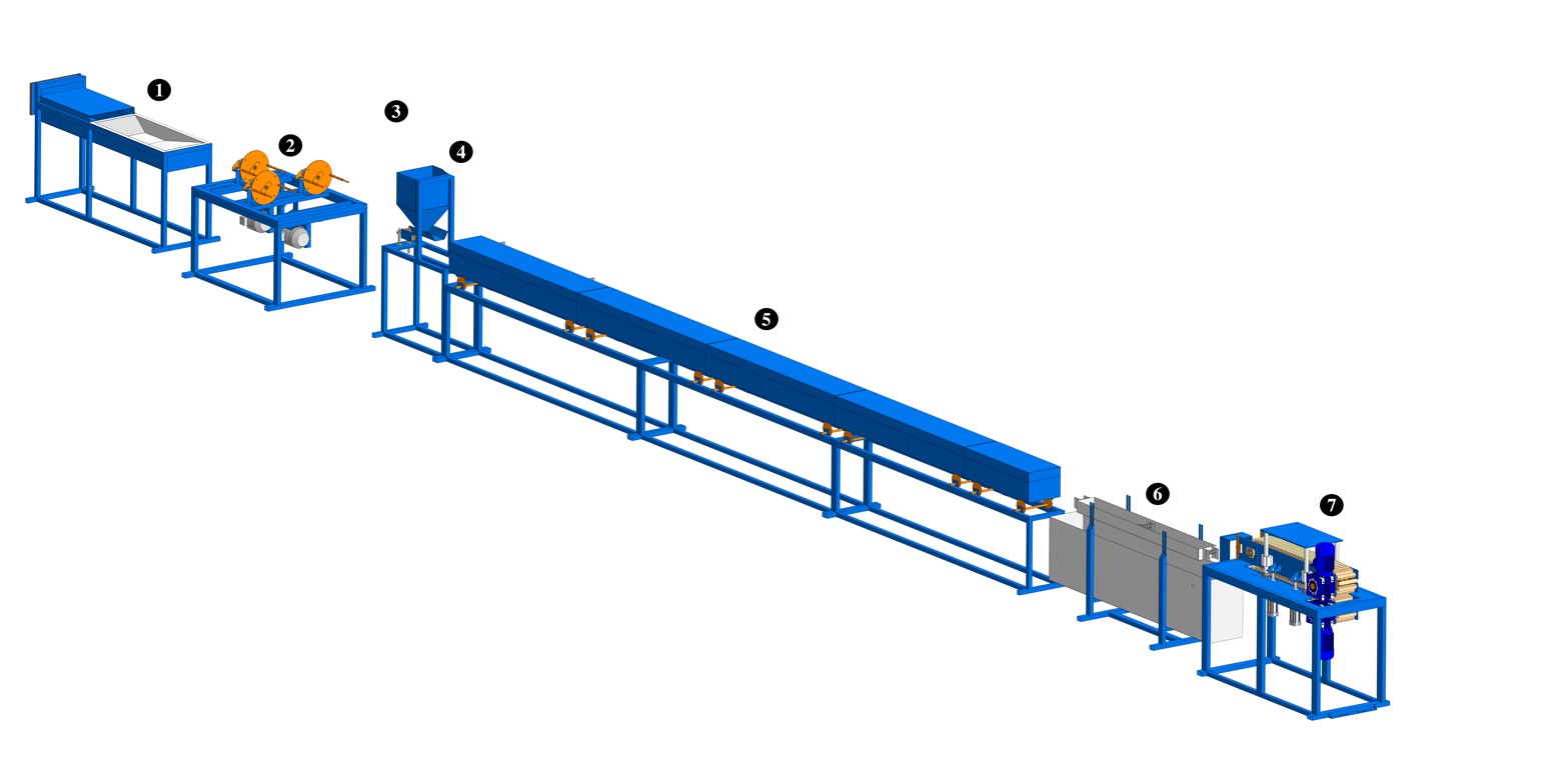 Линия производства композитной арматуры (GFRP) базовой комплектации с 6-вальным тянущим устройством